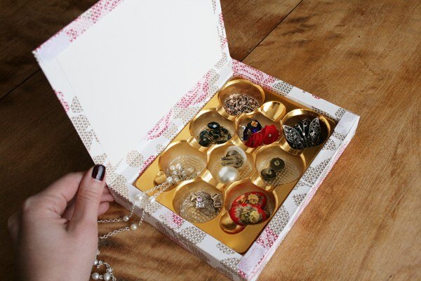 Примеры использования круглой коробки от конфет для хранения мелочей